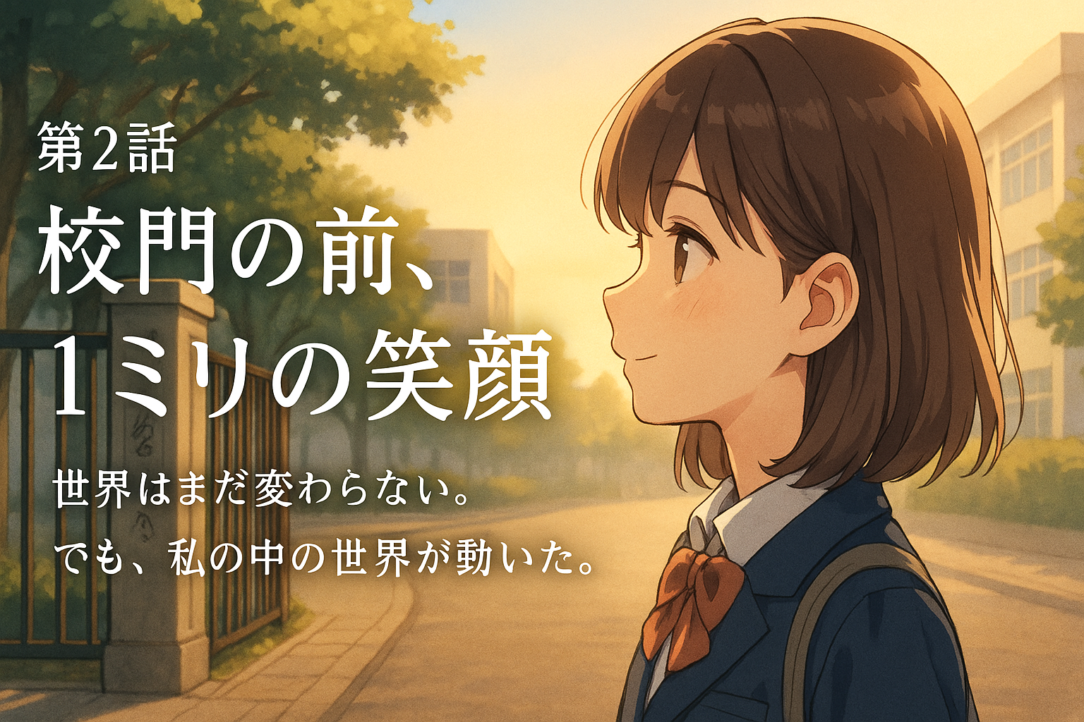 「校門の前で笑って立つ。それだけで、世界は少し動く。」